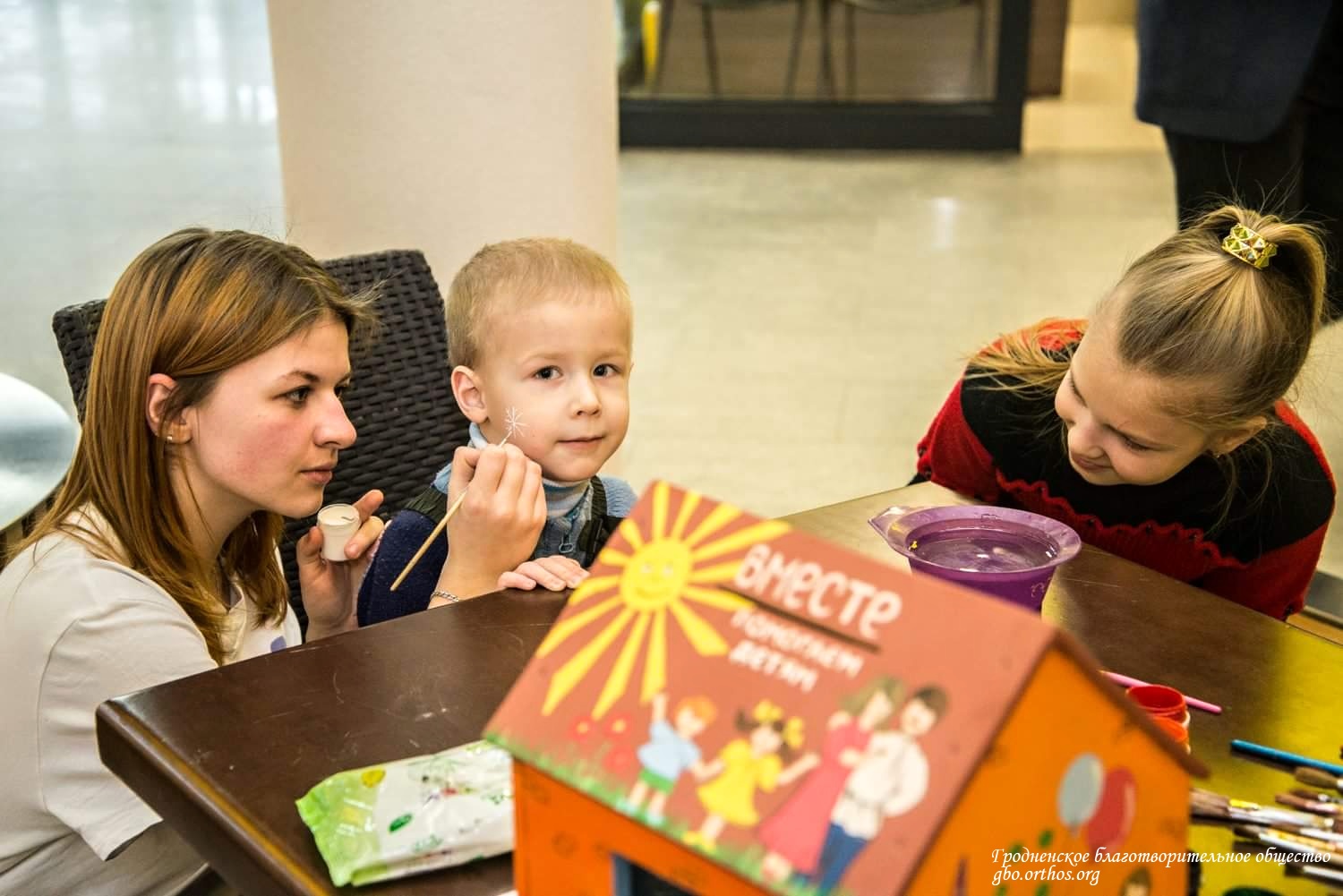 Помимо праздничной программы можно было принять участие в Рождественской благотворительной ярмарке в поддержку подопечных детей Гродненского благотворительного общества. Все изделия, которые были представлены на ярмарке, были сделаны детьми.