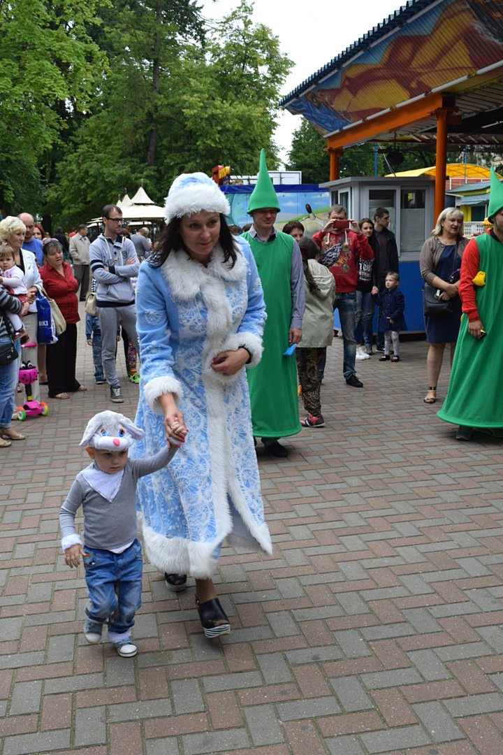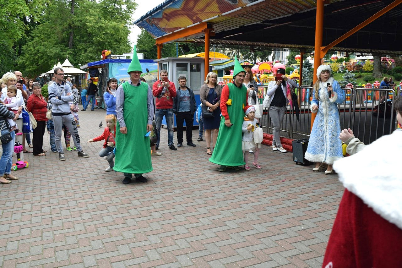 Деды Морозы и остальные герои исполнили свою давнюю мечту — побывать летом в парке! Сначала мероприятия они катались на карусели, затем, собрав детвору, наряжали елку, делали подделки, играли в «выбивалы», в «заморозь меня красный нос», пускали огромные пузыри, танцевали, а также провели конкурс карнавальных костюмов.