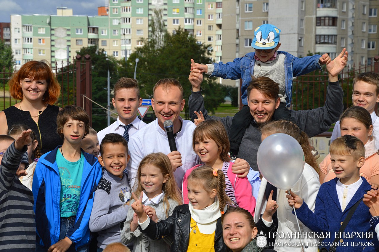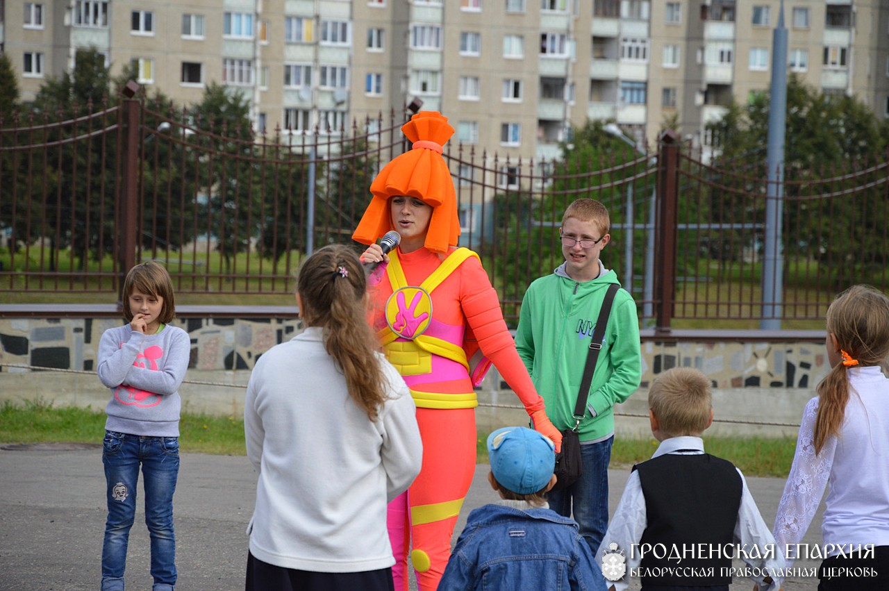Далее на территории прихода детей ожидала и развлекательная программа: выступление черлидерской команды «Майами», крио шоу от Саши Смеха, выступление Симки от студии детских праздников Lemonad.by, мастер-класс по аппликации и лепки от ДЦР «Семь гномов», познавательная площадка с книгами и конструктором лего от мультицентра «Совушка», а также сказочная программа от дог-шоу ФАСончик. Во время игр и конкурсов детям вручались кружки от генерального партнера «Алми» а также билетики на бесплатное посещение аттракциона в Парк аттракционов г. Гродно. Также, благодаря ОАО «Гроднохлебпром» и отзывчивым Гродненцам − Анне, Юлии, Елене, Ирине и Татьяне, для детей был организован и сладкий стол, где ребенок мог выпить не только горячего чая или сока, но также и угоститься сладостями. Ведущими мероприятия были Ульяна Шубко и Егор Чупраков. Благодаря профессионализму Сергей Морозова, на память также дети получили и фотоснимки.