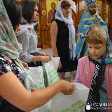 Также, по окончанию молебна волонтерами Гродненского благотворительного общества были вручены пакеты с канцелярскими принадлежностями приглашенным детям, а именно 95 детям-сиротам, детям-инвалидам, и детям из неблагополучных и малообеспеченных семей. После передачи пакетов для детей, состоялось награждение благодарственными грамотами и участников акции: РУП «Гродноэнерго», УГП «Трест»Гродногорстрой», РУП «Фармация» г.Гродно, СООО «Мебель-Неман», УГП «Гродненское троллейбусное управление».