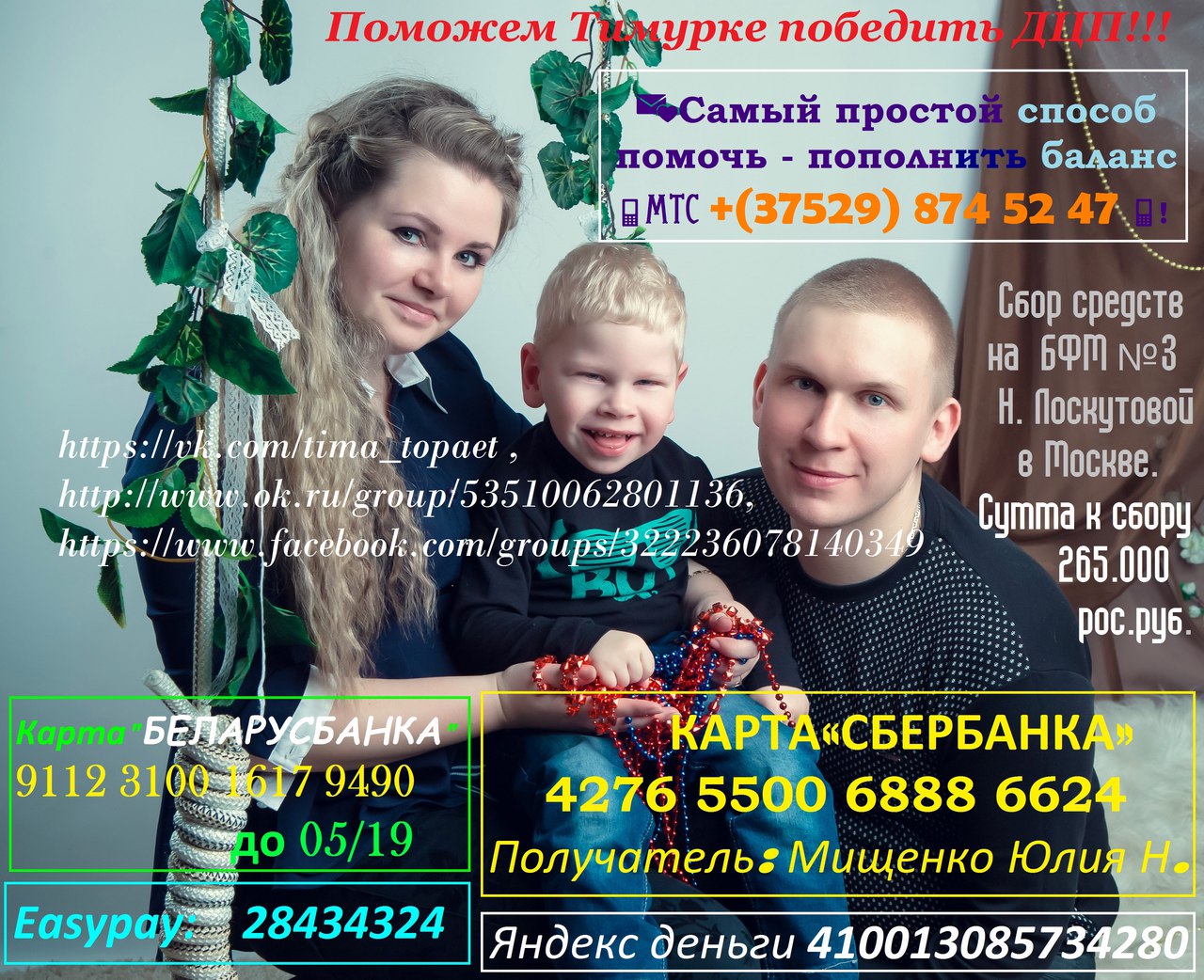 Обращаем Ваше внимание, что Вы можете помочь Тимуру, пожертвовав на следующий благотворительный счет: