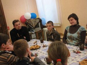 Теплый прием… Рассказ об иконах.. Дне рождения, о приходе и прихожанах.. По доброй традиции, отец Вячеслав угощает нас необычными конфетами, после которых бывает только хорошее настроение! Как и положено в большой семье – смотрим фотографии из жизни прихода… И нам все очень нравится!