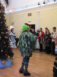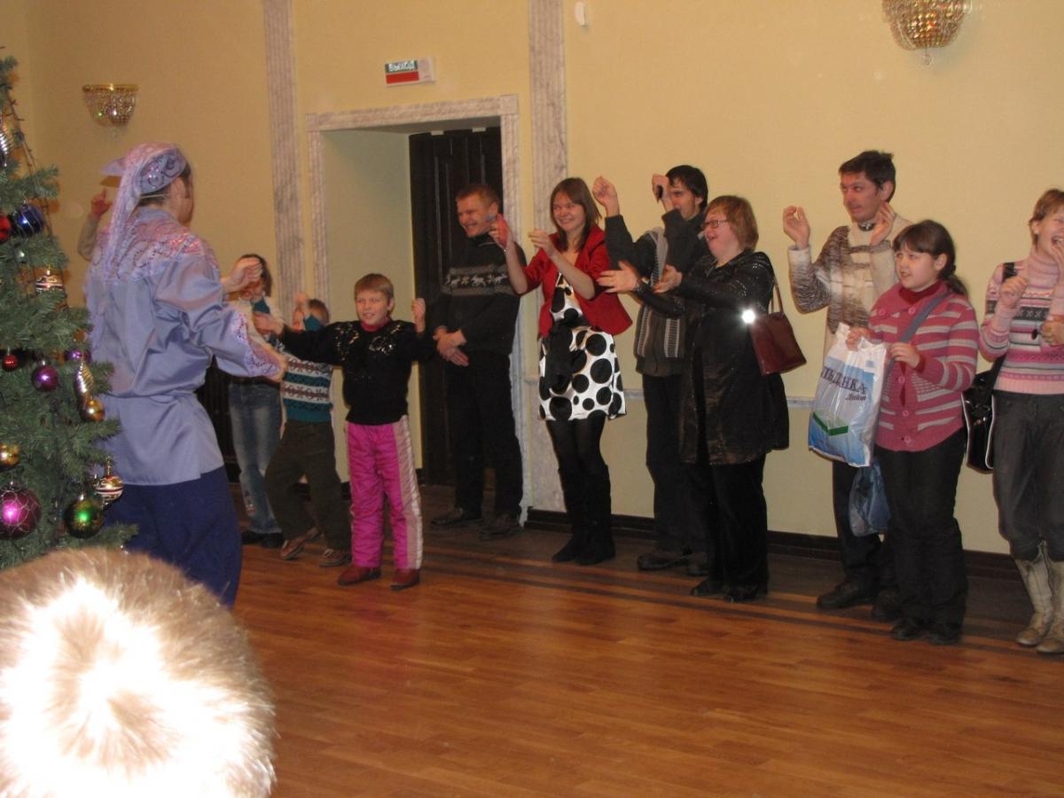 После сказки все ребята – а надо отметить, что с нами в зале были еще детки-инвалиды из Октябрьского центра дневного пребывания – отправились в фойе, где стояла чудесная елка! Сказочные персонажи сменяли один одного! Игры, конкурсы, хороводы… Дед Мороз, Снегурочка… Детский смех, улыбки, конфеты.. Все составляющие детского праздника!